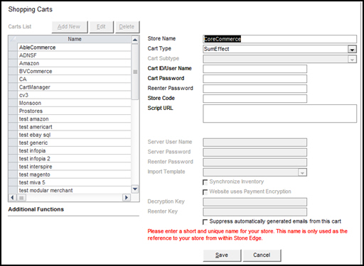 Shopping carts can be defined during the Setup Guide when the program is first installed, or you can enter them at a later date by following these instructions.