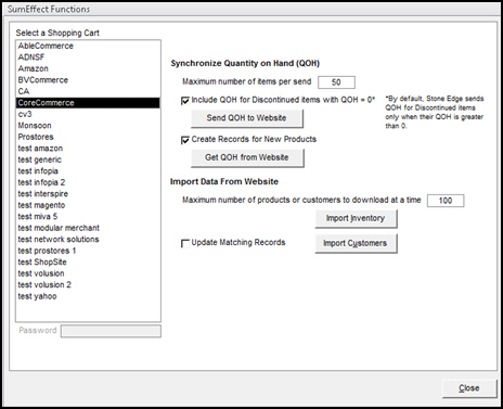 This is a static, single point-in-time transfer of QOH data between Stone Edge and a shopping cart, depending on the capabilities of the shopping cart system.