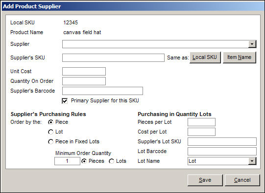 Use this screen to associate multiple suppliers with a product or make changes to the selected supplier's purchasing information or status.