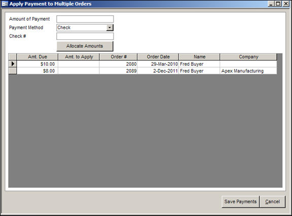 - to manually allocate a portion of the payment amount to multiple orders, enter the amount to apply against each order in this column