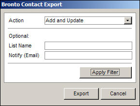 Click the [Apply Filter] button to launch the Bronto Export Filter screen: