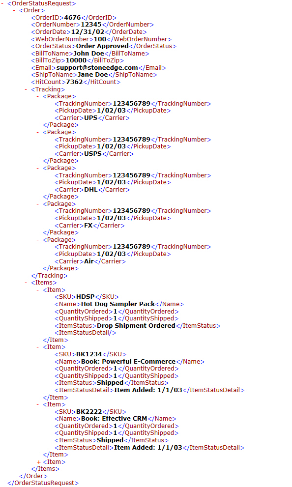 To see sample data of what the XML for the Order Status System looks like, click here.