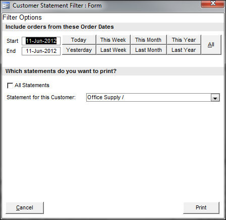 - select a specific customer from this list to print a statement for just that individual in the specified date range