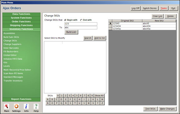 For this example we will change a group of SKUs that Begin with "123" to "abc":