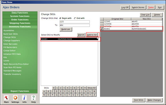 Select a SKU from the list and click the [Add to List] button move the right-hand pane.
