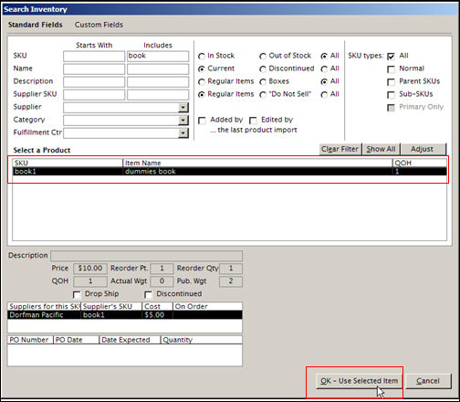If that is all of your changes, you would then click the [Make Changes] button; however, we are going to continue with another example of how to select a single SKU.
