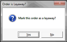 The Order is Layaway? confirmation message box opens. Click Yes.