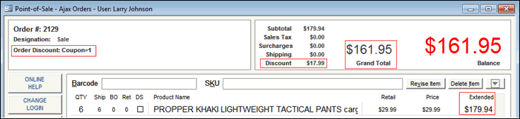 Note: You can also add the discount after items are added to the order, if you prefer.