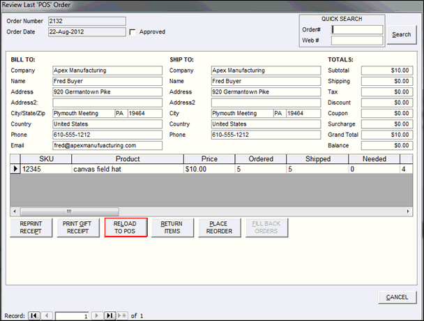 Select Reload to POS. Only unapproved POS orders can be reloaded to the POS interface.