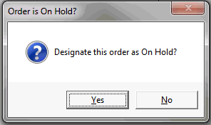 The Order is On Hold? confirmation message box opens. Click Yes.