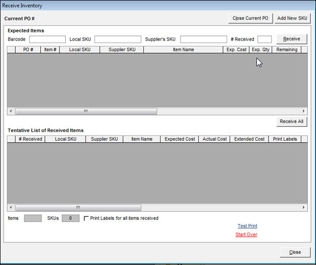 The Receive Inventory screen is used to add incoming merchandise into your SEOM inventory when it arrives from a supplier.
