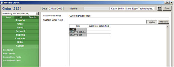 the user could enter their own data to associate with the SKUs in the current order, or it could also contain data from a check-out field at the shopping cart, depending on the capabilities of the cart