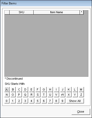 button to close the Filter Items screen and remove the filter from the group of records displayed at the Inventory screen.
