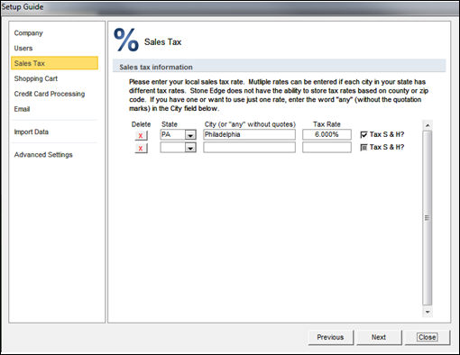 Click the section tabs or use Next and Previous to move backward or forward through the process.