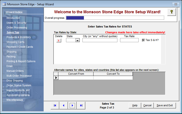 Figure 3: Store Setup Wizard - Sales Tax section, Page 3