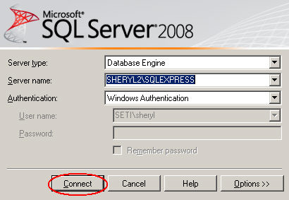 In the figures below, the machine name is Sheryl2 and the SQL instance name is SQLEXPRESS: