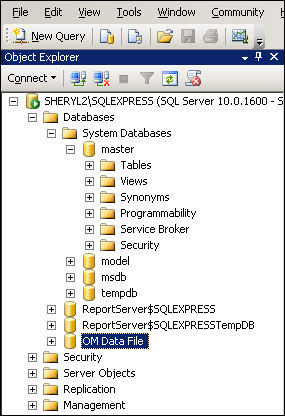 You must install each of the first three components if they are not already installed on a each workstation that will be running SEOMwith an SQL data file. The Microsoft SQL Server Management Studio Express does not necessarily have to be installed on every PC in the configuration, but it should be installed on the server where the database will reside and on at least one administrator's workstation.