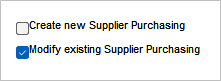 NOTE: If a new primary supplier needs to be defined, first edit the existing primary supplier to not be the primary using a file and in a separate file define the new one. - Modify existing Supplier Purchasing -> edits existing purchasing records when all required fields match existing records