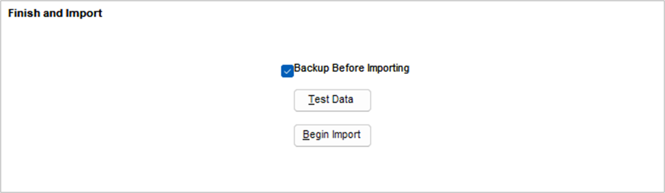 • Begin Import -> Click to start importing data.