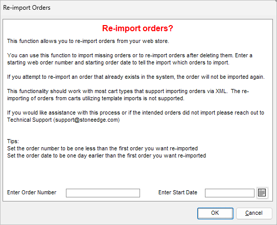 - If an unknown number of orders need to import, use the prior date to any known orders