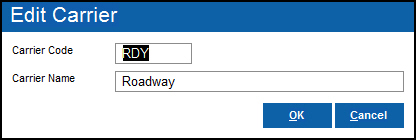 The Add/Edit Carrier screen is called by the Add or Edit buttons on the Carriers & Shipping Methods screen accessed through File>Settings>Setup>Shipping>Configure Shipping Methods>Create Other Carriers and Shipping Methods.