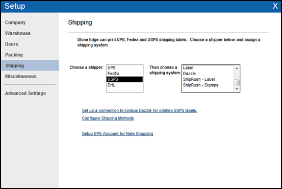 Setup a connection to Endicia DAZzle for printing USPS labels