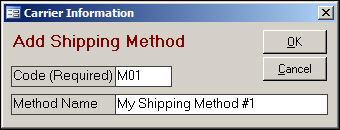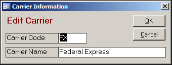 These screens are used to add a non-standard shipping carrier or change the value of the Carrier Name field for one of the standard shipping carriers (DHL, UPS, FX, or USPS). Most users will not need to use this feature.