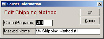 Click the [Add] or [Edit] buttons above the Carriers list box in the upper left-hand side of the screen, or those above the Selected Carrier's Shipping Methods list box in the upper right-hand corner of the screen.