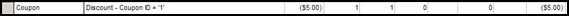 The coupon will appear as a line item on the order and the Coupon line of the pricing summary will reflect the value of the coupon in the Revised column.