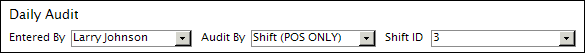 The top of the Daily Audit screen changes slightly depending on the value selected in the Audit By drop-down list, as shown by the images below.