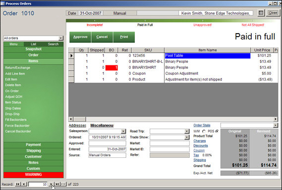 Main Menu>What would you like to do?>Process My Orders>View and Process My Orders>Items