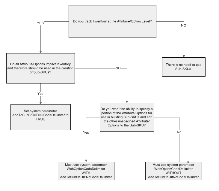 After you create sub-SKUs, the System Parameters used to create them must remain unchanged in order for the Parent SKU to be replaced by the sub-SKU in incoming orders.