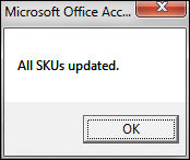 A list of records (SKUs) matching the criteria in the text field appear in the right-hand pane.