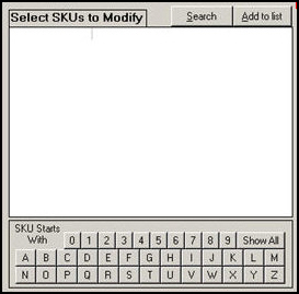 Select a number or letter button to see a list of records starting with that character in Select SKUs to Modify.