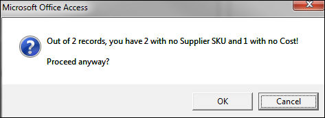Optional: Select whether to use the suppliers own SKU as the Supplier's SKU in the inventory record or to use the value of the LocalSKU field in the inventory record as the Supplier's SKU. Choose whether to make that change for a single record or all records in the right-hand pane.