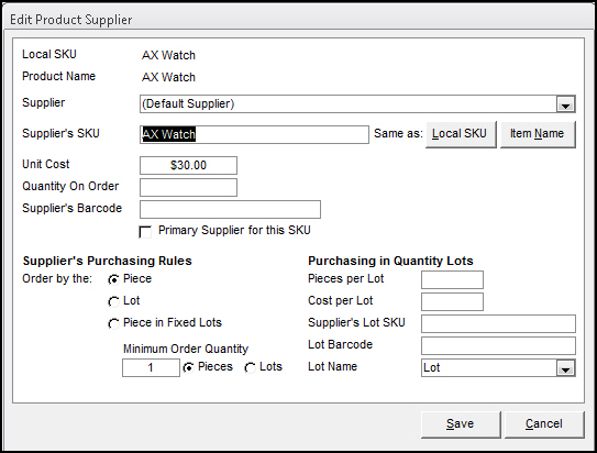 Supplier's Lot SKU