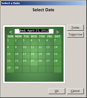 Select a Date screen (Calendar Icon)