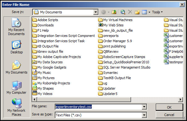 Select OK to use the name and location suggested by the program or navigate to another location and enter the name of your choice in the File Name: field.