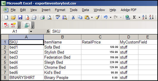 to produce a column that contains the same value in each row, enter a comma after the value in the Field Label column and append the static value; for example, if we select "Add Custom Column" from the drop-down list in Field1 and enter a label of Drop-ship Charge,Not Applicable, every record in the file would contain the value, "Not Applicable", in the column labeled Drop-ship Charge.