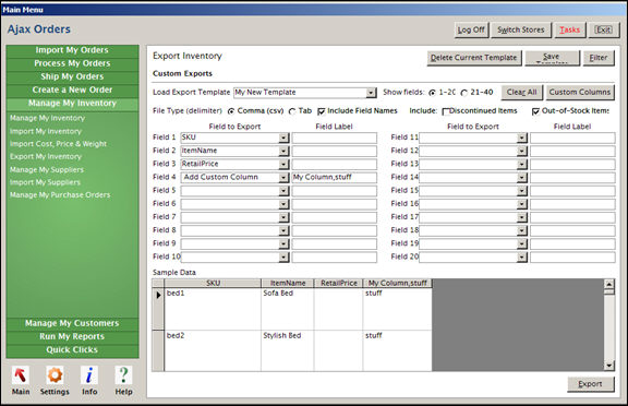 To access this screen go to: Main Menu>>Manage My Inventory>Export My Inventory