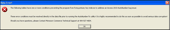 Order Manager listed in this topic, you should contact the Technical Support department for assistance in repairing the AutoNumber data corruption in your system.