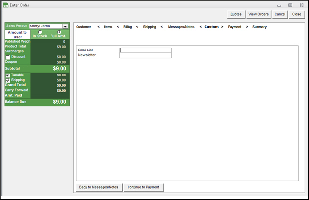 Enter values in the custom fields as necessary and proceed to the next section, Payment.