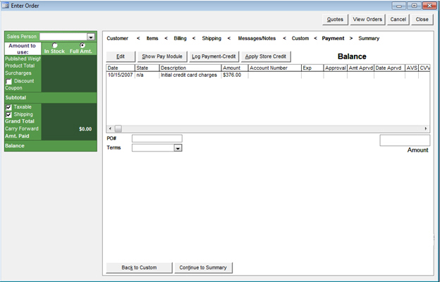 Enter payment information for orders here.