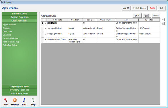 Go to the Main Menu>Settings>Order Functions>Approval Rules link.