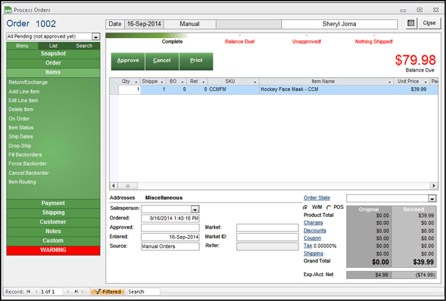 Main Menu>Process My Orders>View and Process My Orders>Items