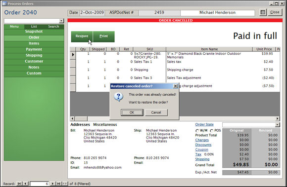 If the program is configured to allow users to cancel orders, it may be possible to restore an order that was cancelled by mistake.