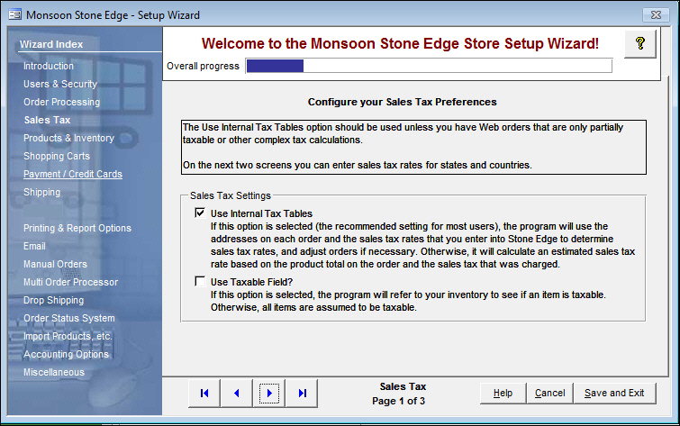 Figure 1: Store Setup Wizard - Sales Tax, Page 1