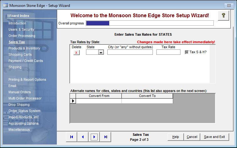 Figure 2: Store Setup Wizard - Sales Tax, Page 2