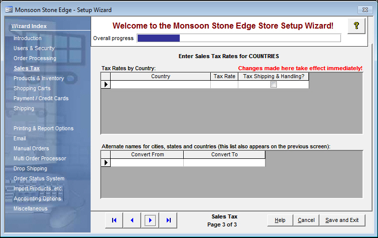 Figure 3: Store Setup Wizard - Sales Tax section, Page 3