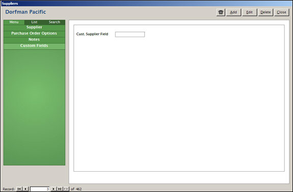 The Custom Fields tab is only visible if custom supplier fields have been defined.